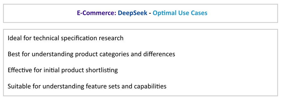 This demonstrates how DeepSeek attempts to provide comprehensive, practical purchasing guidance while maintaining relevance to individual buyers.