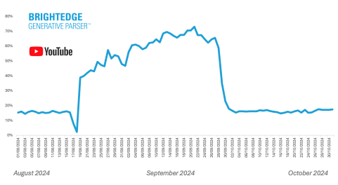 After a massive spike in September, YouTube citations in AIOs have stabilized at 115-120% above their August baseline. What’s especially compelling is that AI isn’t just referencing video descriptions—it’s citing spoken content within videos. This makes YouTube a must-focus platform for brands.
